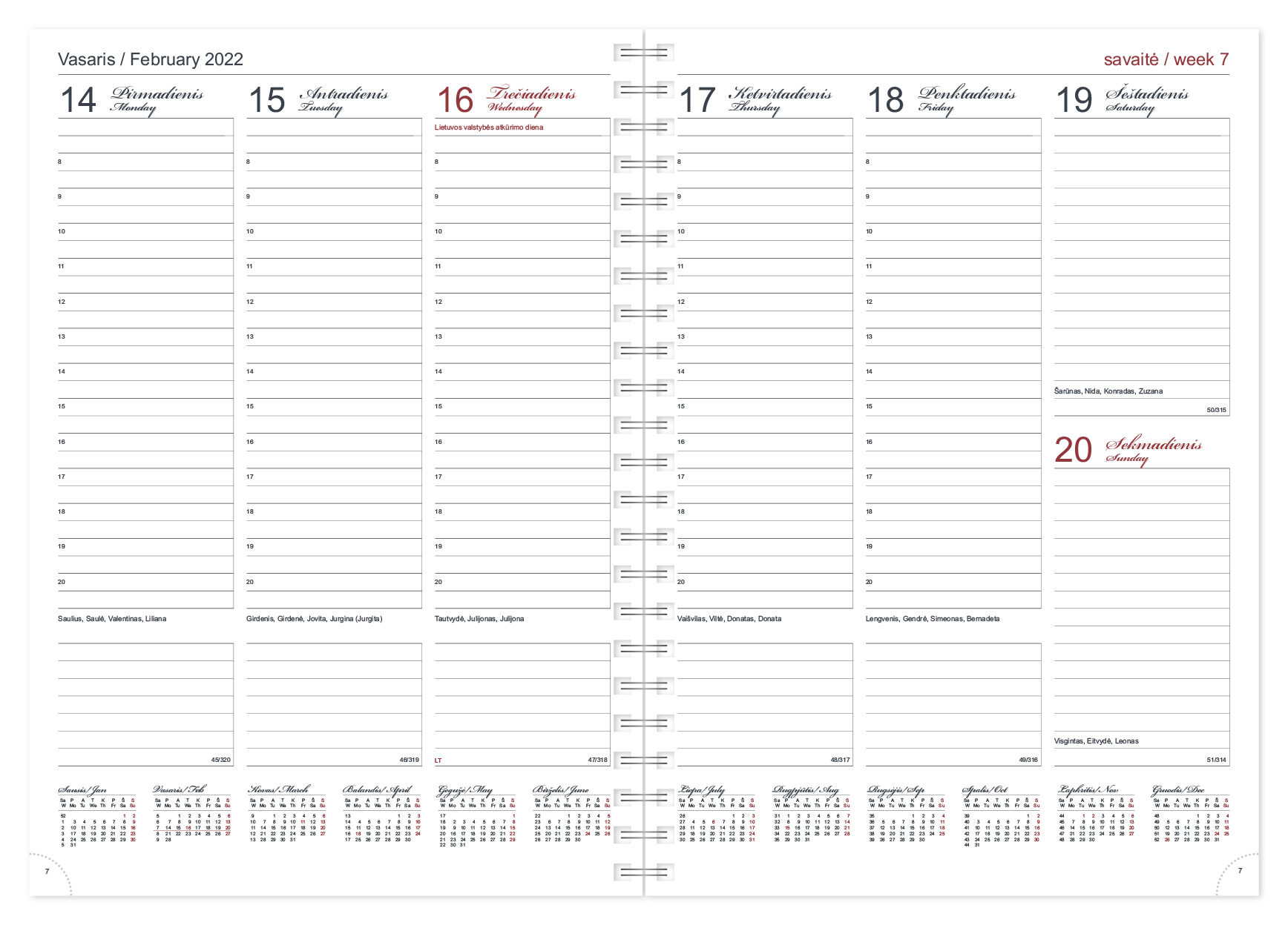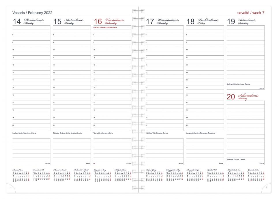 Darbo kalendorius Timer LIT-Futura VIP Spirex, A4, auksinis kraštelis, tamsiai rudos spalvos