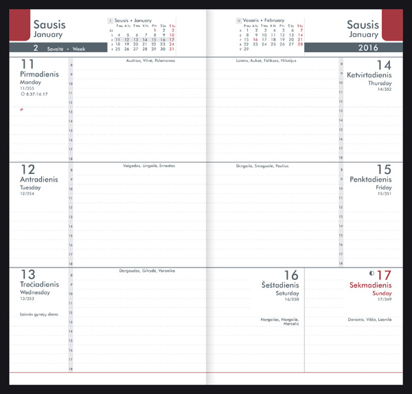 Kalendorius Week 2026, A5, PU, juoda sp.