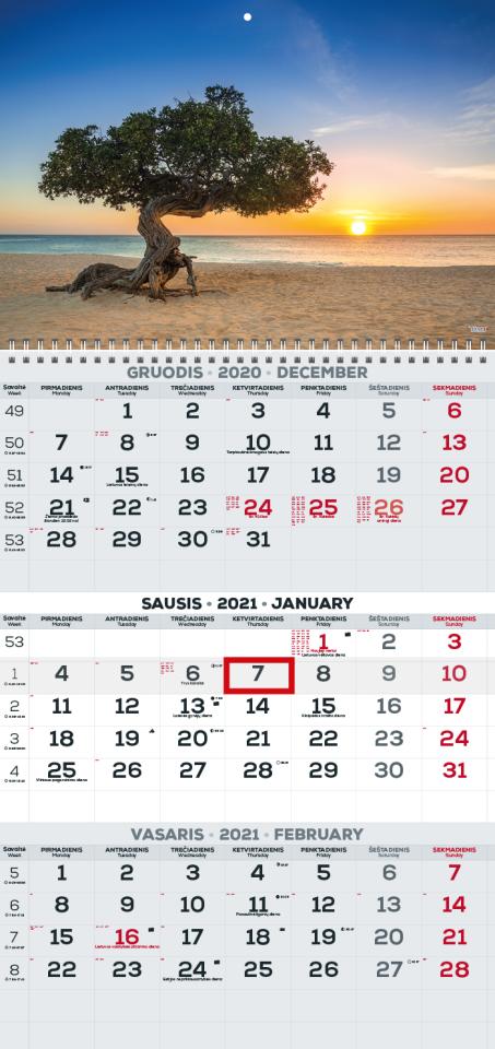 Pakabinamas kalendorius ŽIBINTAS, 2026, 3 dalys