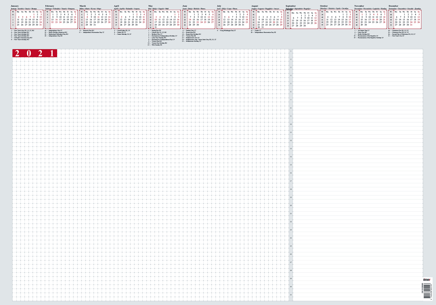 Stalo kalendorius-patiesalas Timer Desk Pad, 2026 A2