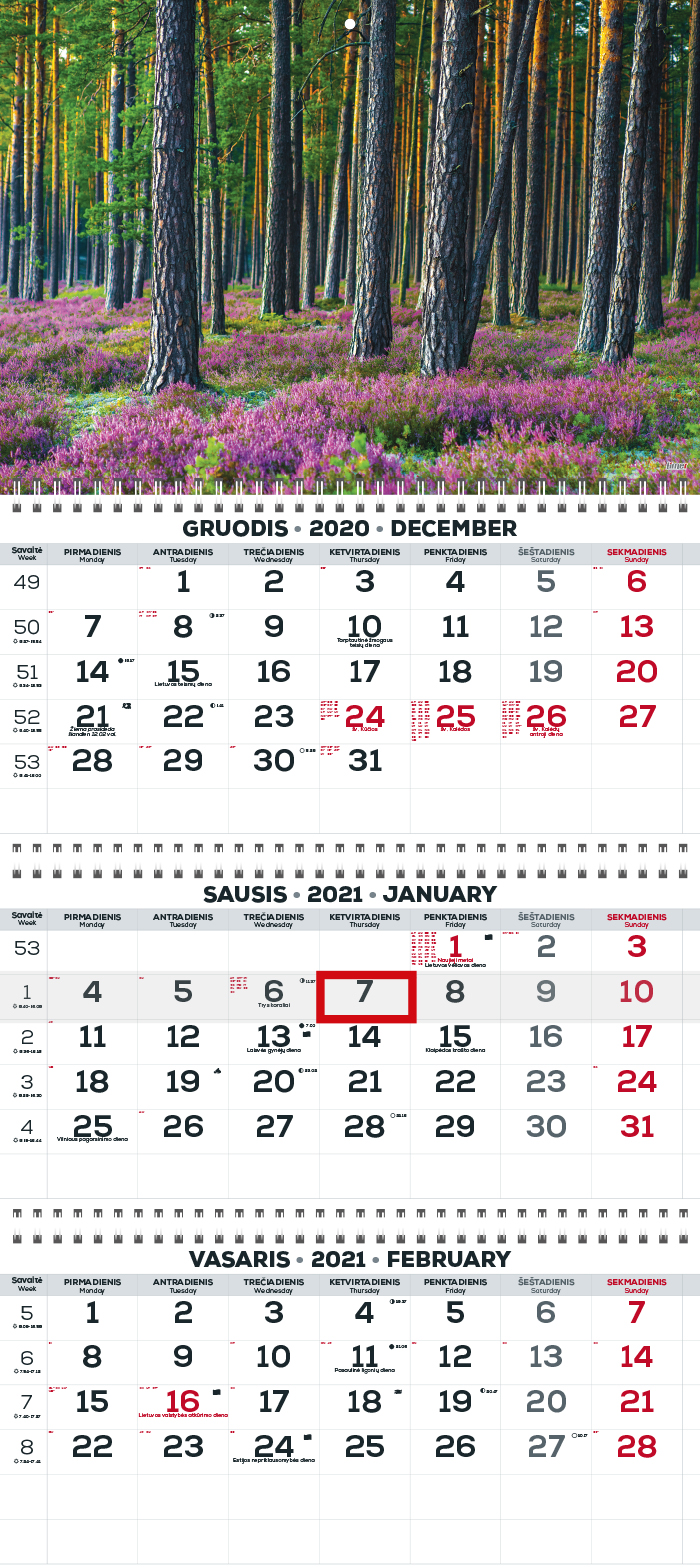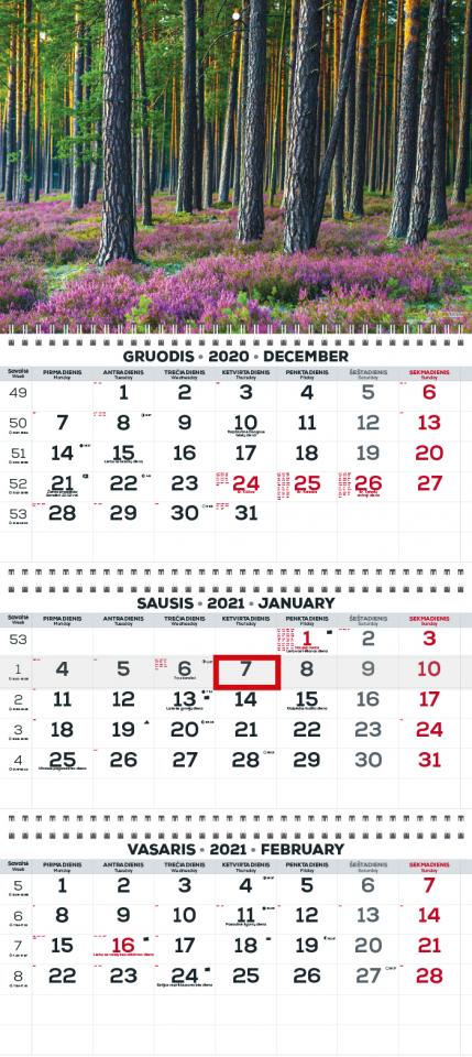 Pakabinamas kalendorius ŽIBINTAS, 2026, 3 dalys