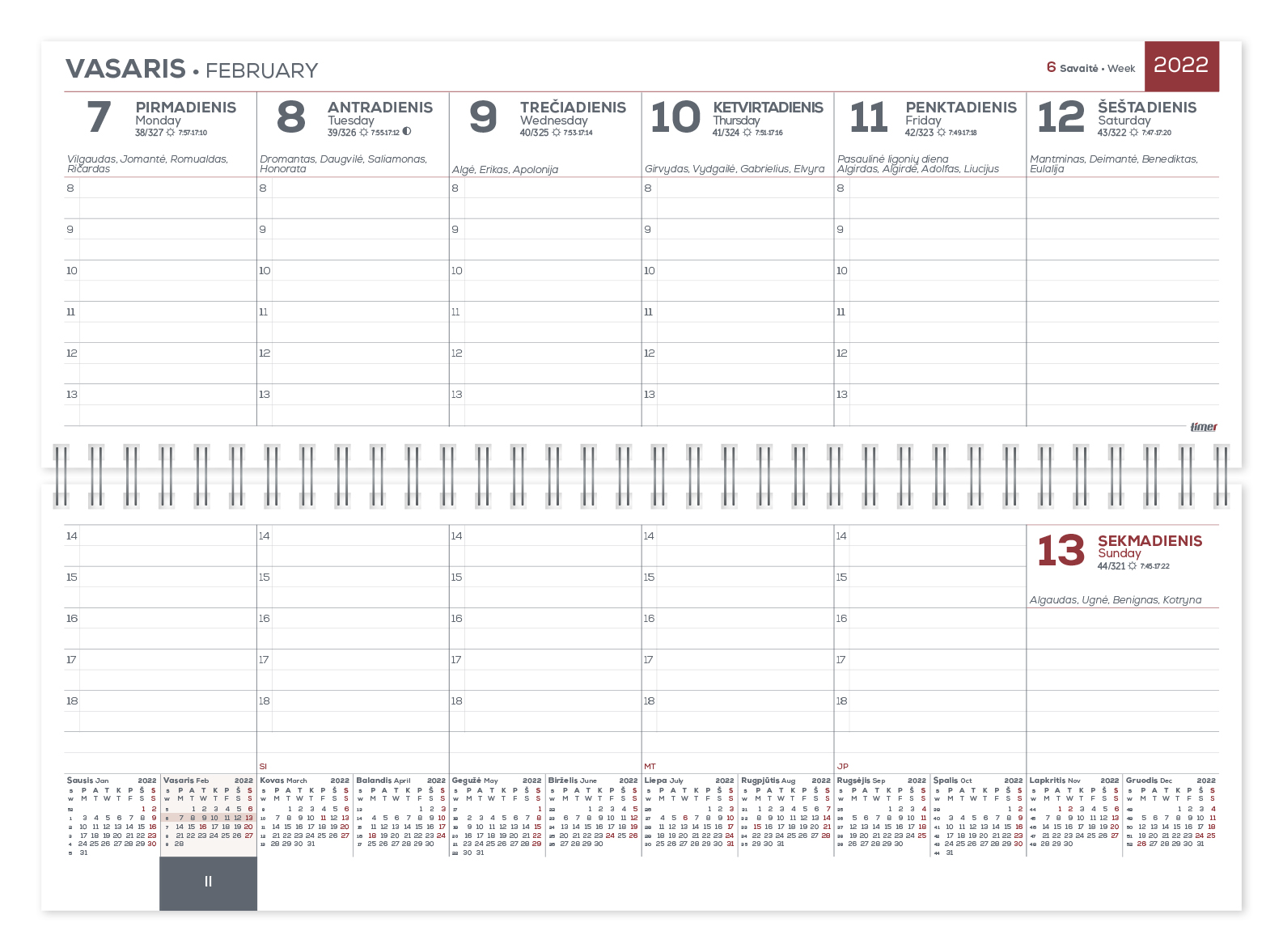 Papildomi lapai darbo kalendoriui Timer Futura, A4