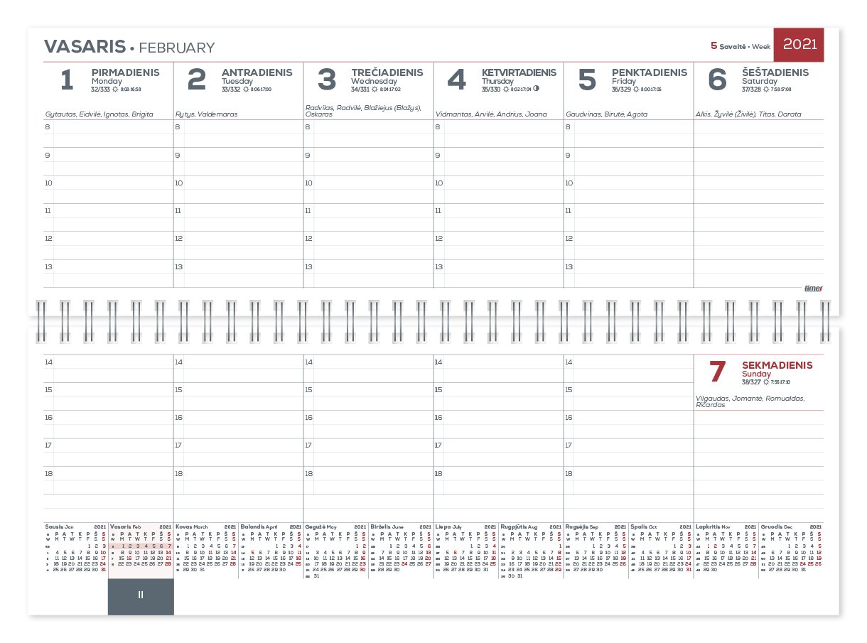 Stalinis kalendorius Timer Memo, 290x105mm, PVC viršelis, juodos spalvos