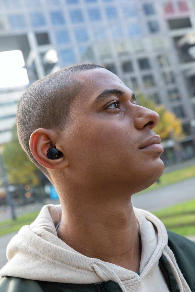 Free Flow TWS earbuds in charging case
