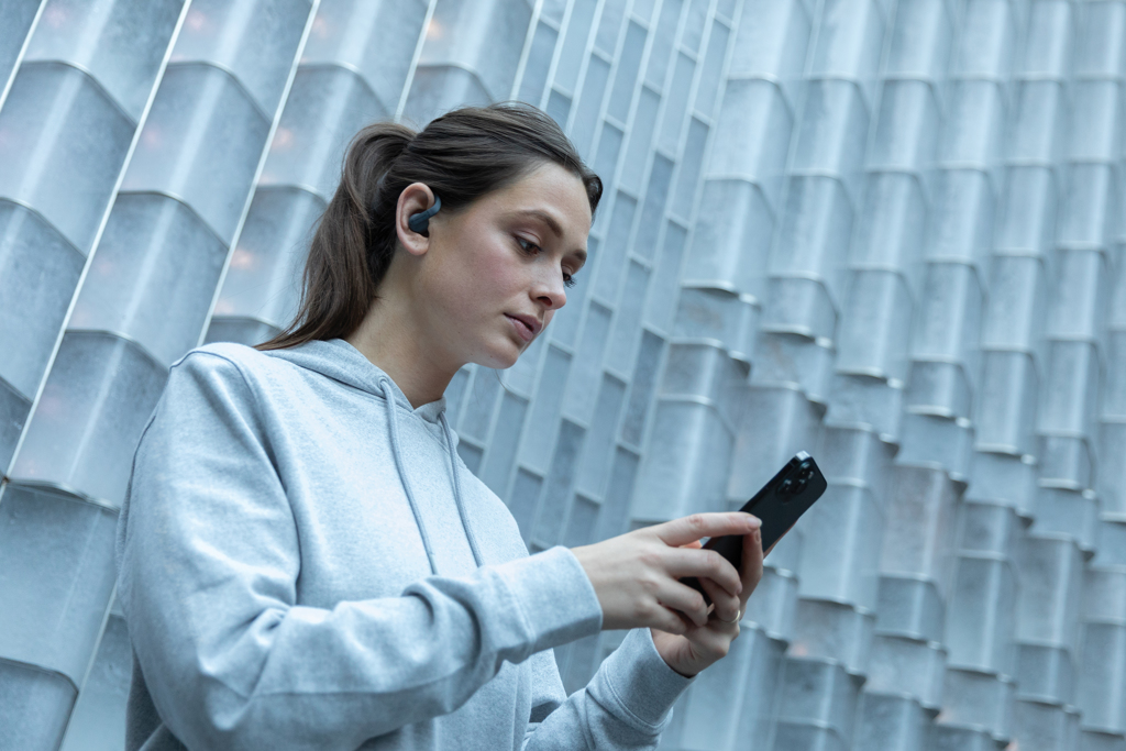 Free Flow TWS earbuds in charging case